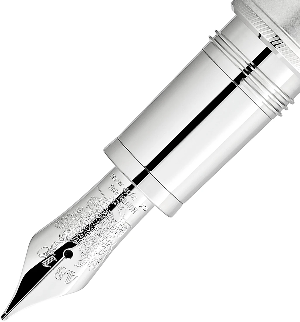 Au 750 massief gouden penpunt, gerhodineerd, met speciaal reliëf.