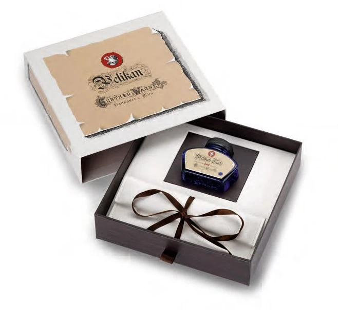 Het helder rood penlichaam en dop zijn vervaardigd uit hoogwaardig acryl met een marmermotief. Dit patroon past mooi bij de 24 karaats vergulde clip en sierringen. De 14 karaats gouden penpunt is beschikbaar in: EF, F, M en B. Elke vulpen wordt geleverd in een fraaie geschenkverpakking met een historische flacon 4001 inkt.